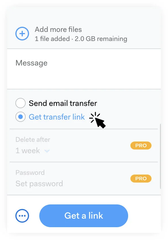 5. Choose “Get transfer link”, then click “Get a link”